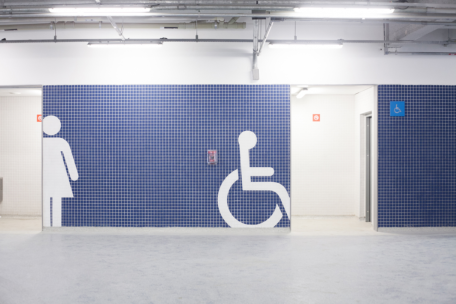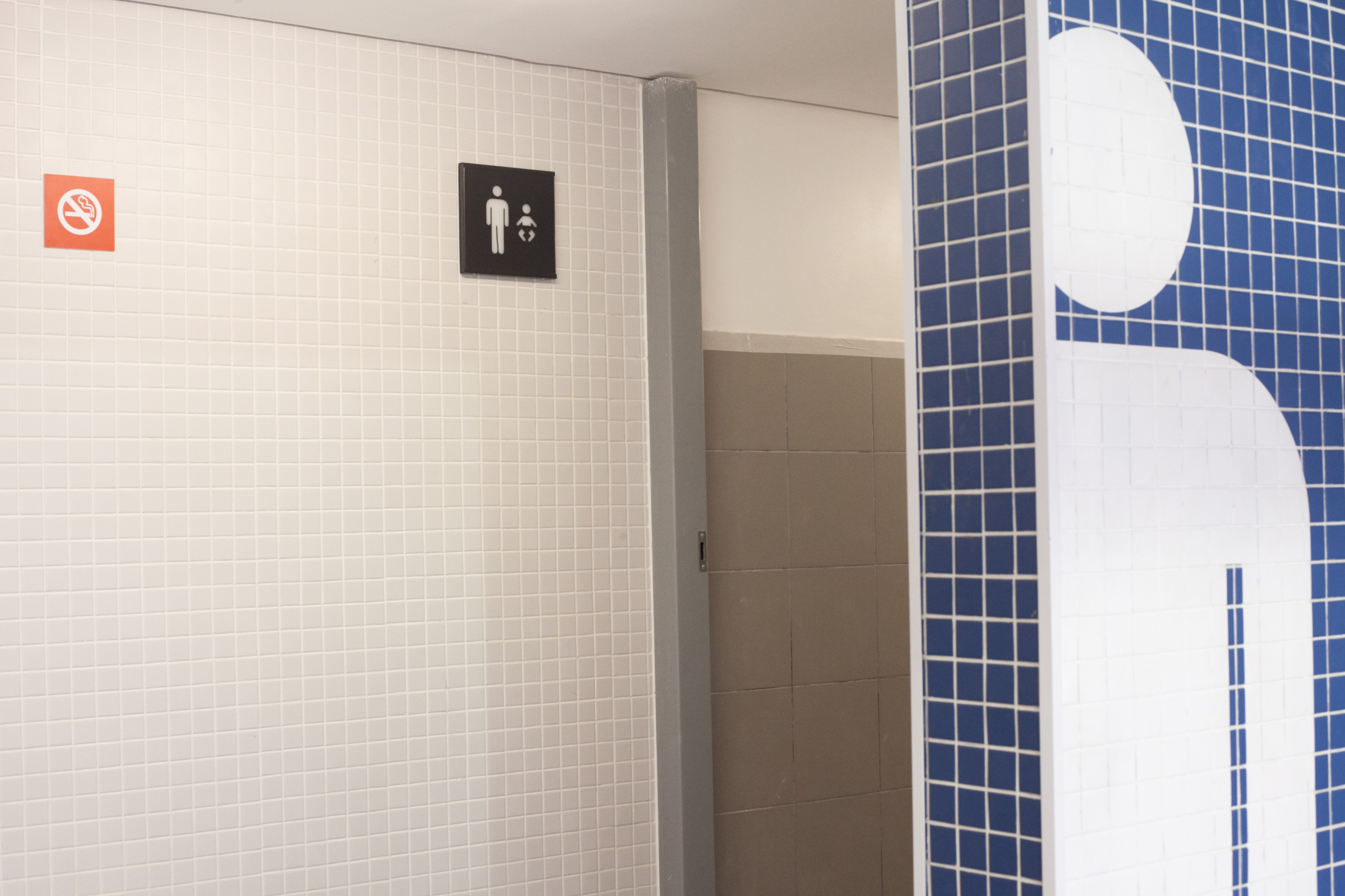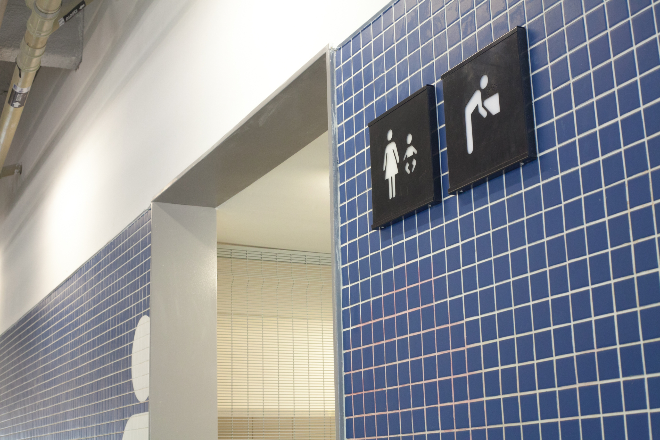 Falhas de execução: Pinturas de pictogramas em banheiros apresentaram falta de aderência nas pastilhas por ausência de primer, o que resultou na necessidade de refazer quase 100 intervenções.