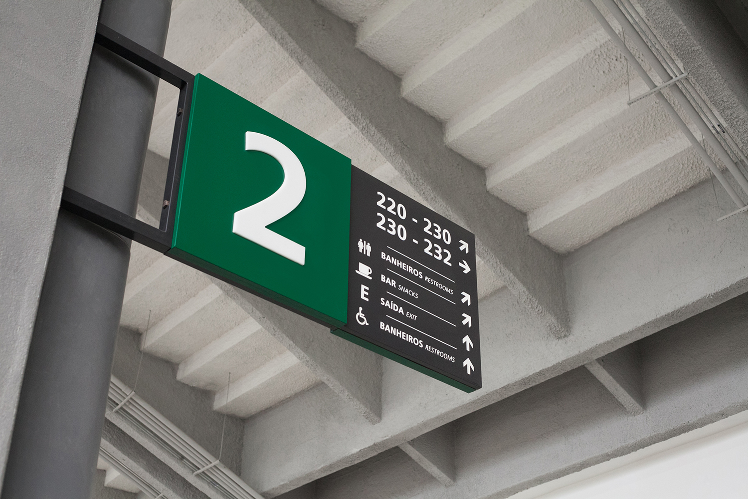 Inventário e escala: Ao todo, o projeto resultou em um quantitativo de 3.750 elementos de sinalização . Isso abrangeu placas metálicas, totens em acrílico, sinalizações de emergência e intervenções de pintura em pilares com até 2,10 metros de altura.